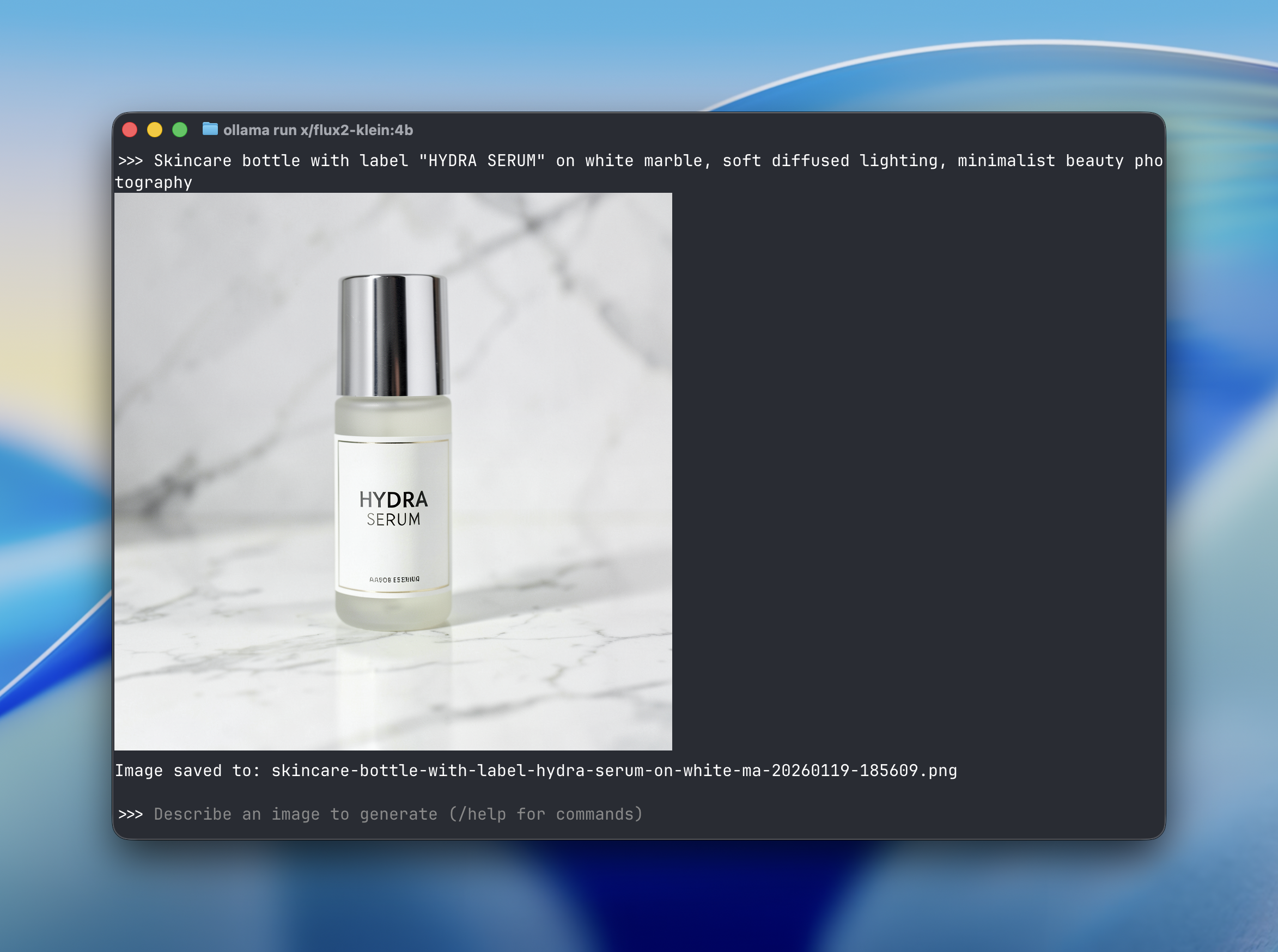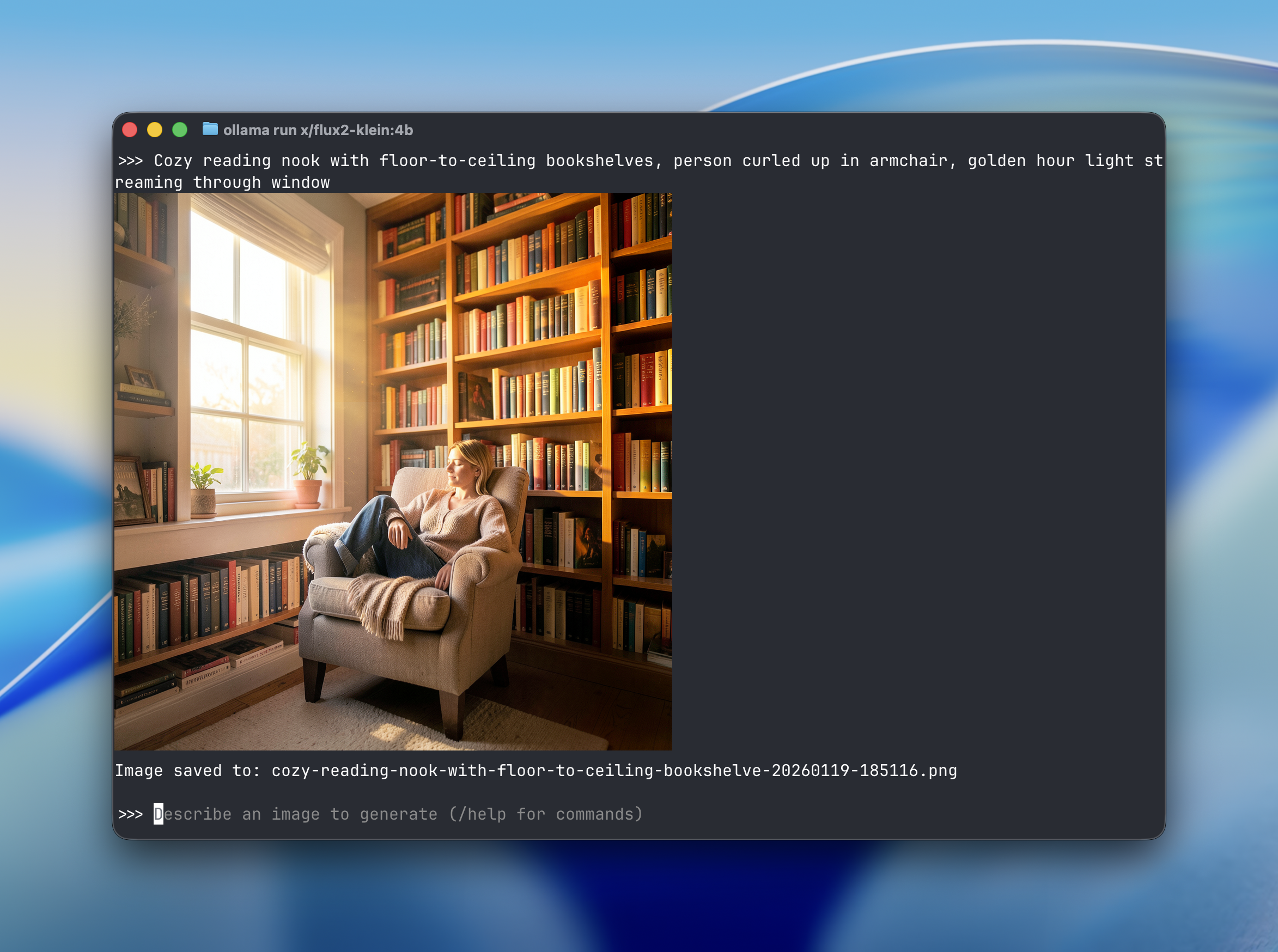 ollama run x/flux-klein:9b "a cat holding a sign that says hello world"