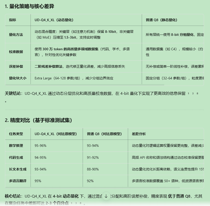 重点:这是unsloth的Q4动态量化版本,精度第一的量化版本!Unsloth Dynamic 2.0 实现了卓越的准确性,并超越了其他领先的量化模型。UD-Q4_K_XL的输出精度比普通Q8版本更加好!